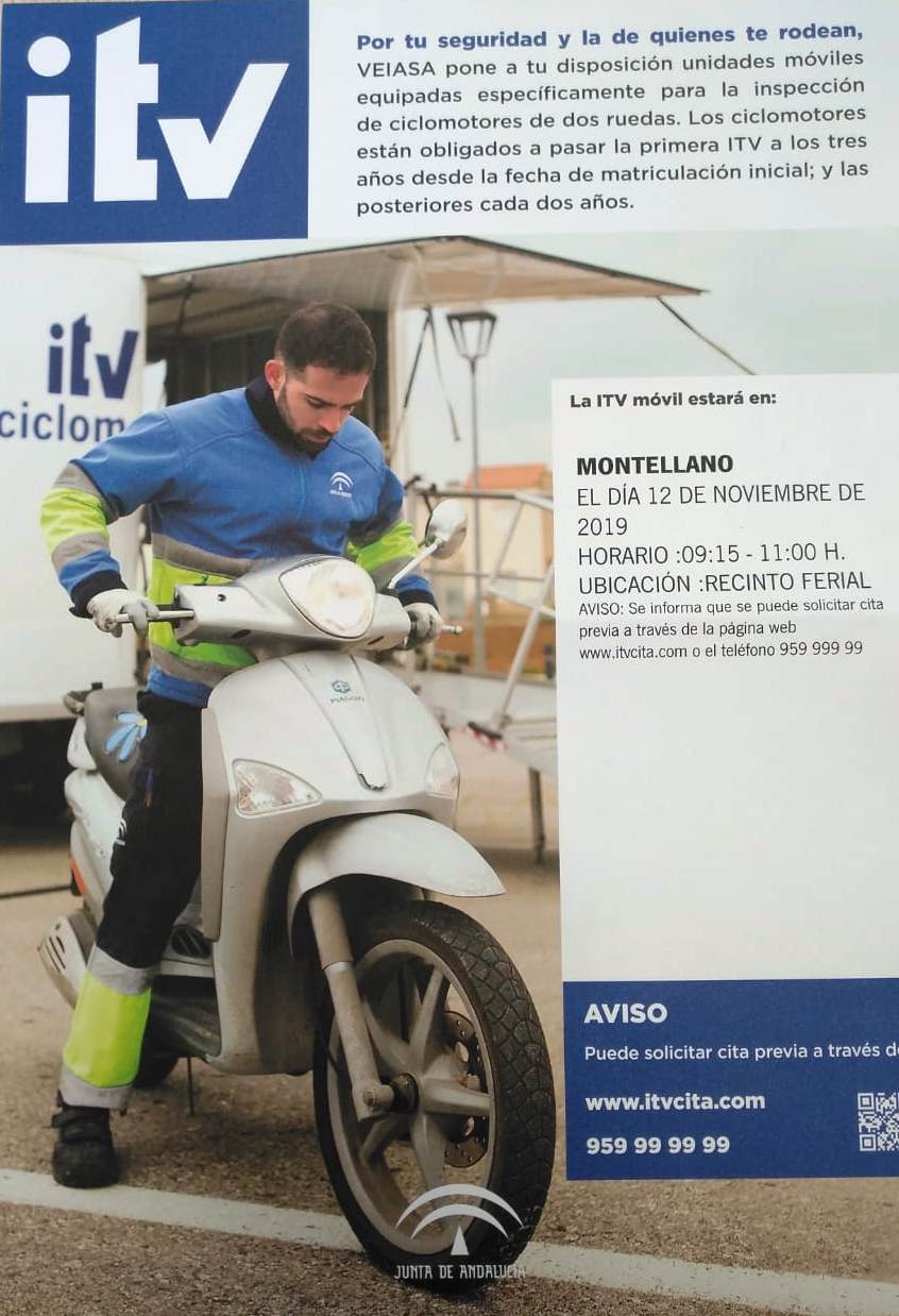 La nueva cita para pasar la ITV a los ciclomotores en nuestra localidad, ya tiene fecha, será el próximo día 12 de noviembre en el Recinto Ferial. Los horarios de atención al público serán, por la mañana desde las 09:15 a 11:00 horas.