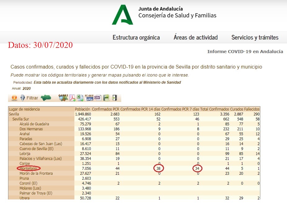 Hoy jueves se vuelven a actualizar los datos de contagiados por COVID-19 en Montellano, según publica la Junta de Andalucía.