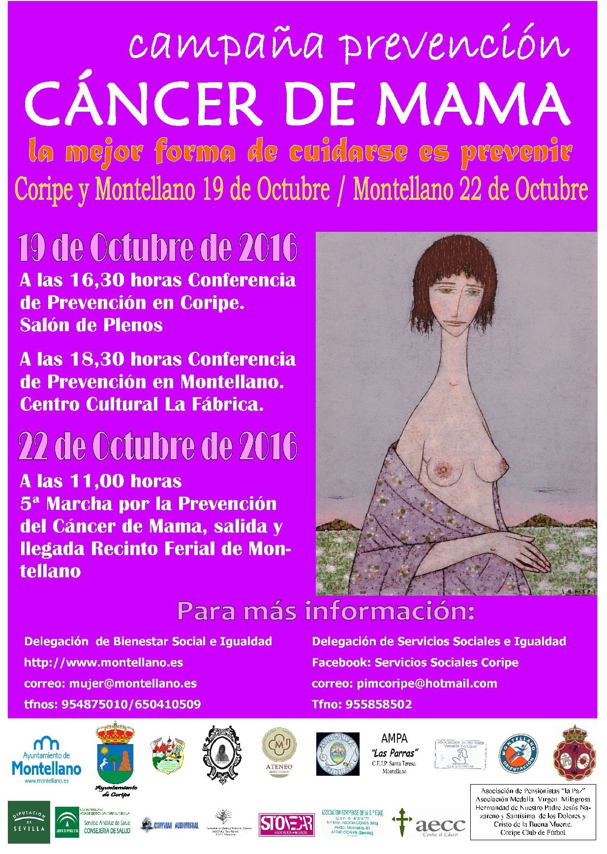 Dentro de la Campaña de Prevención del Cáncer de Mama, el Área de la Mujer del Ayuntamiento de Montellano en colaboración con diversas entidades del municipio y de Coripe, ya se encuentra preparando la “5ª marcha a pie contra el cáncer de mama”. La marcha tendrá lugar el sábado 22 de octubre y arrancará desde el parque de la calle Ruiz Ramos a las 11 de la mañana. Los/as interesados/as en participar deberán inscribirse previamente, hasta el 19 de octubre, en el Punto de Información de la Mujer (Edificio Servicios Sociales, en Calle Martín Salazar).