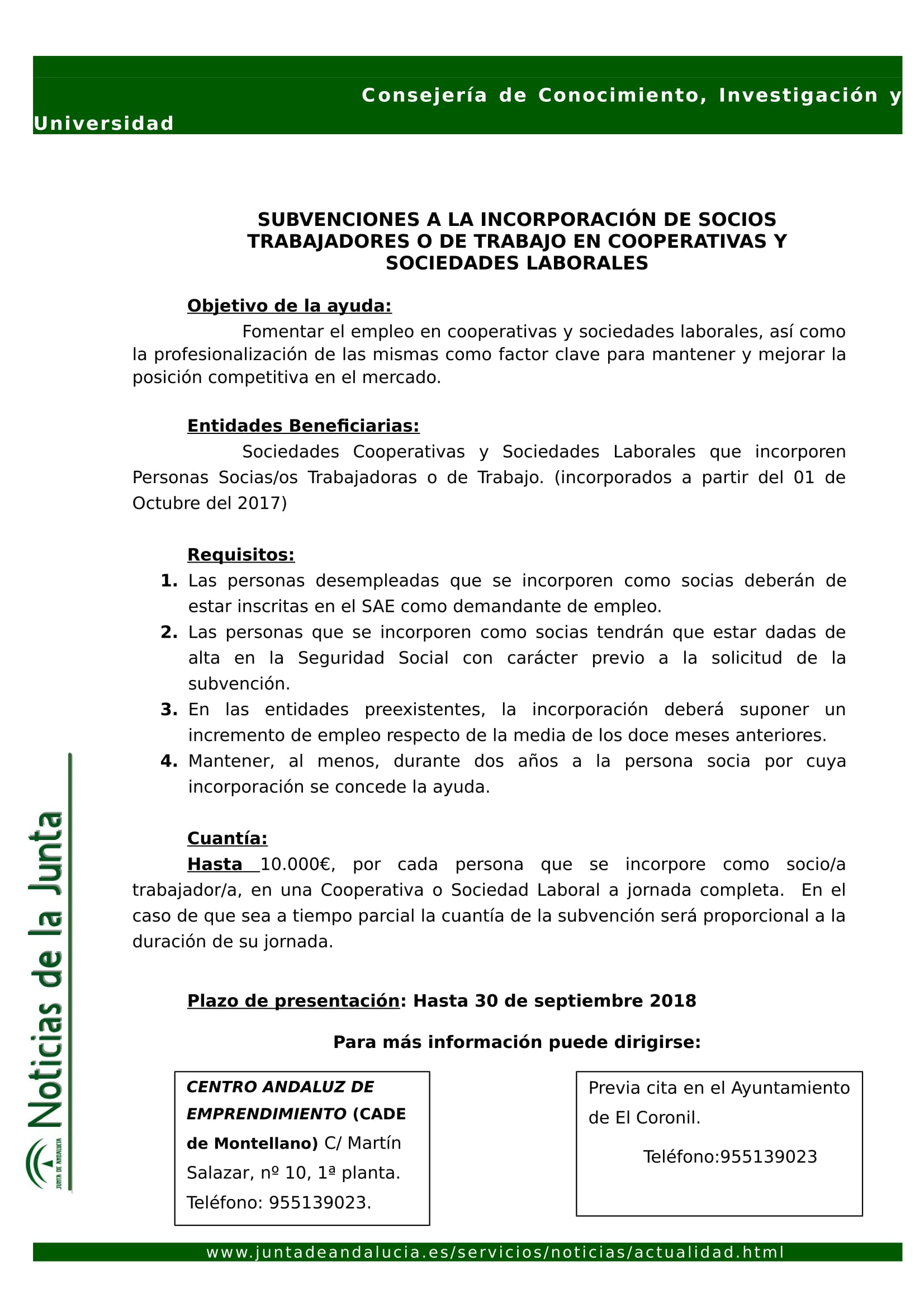 Convocatoria de ayudas por la incorporación de socios trabajadores o de trabajo en Cooperativas y Sociedades Laborales