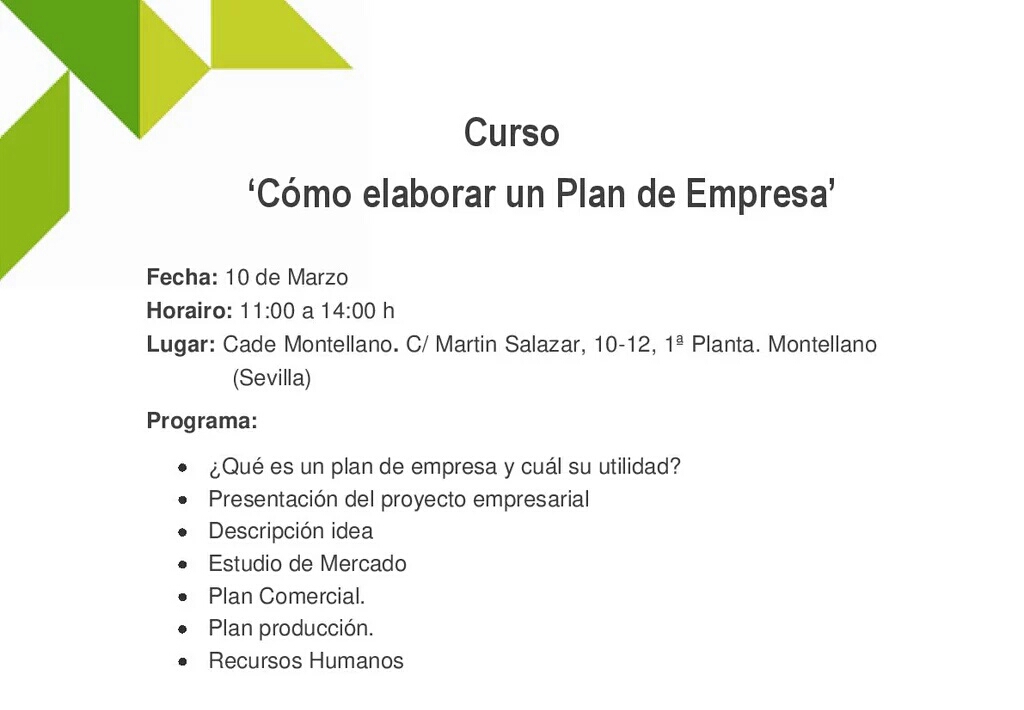Curso "Como elaborar un Plan de Empresa" dirigido a todas aquellas personas que tengan una idea de negocio