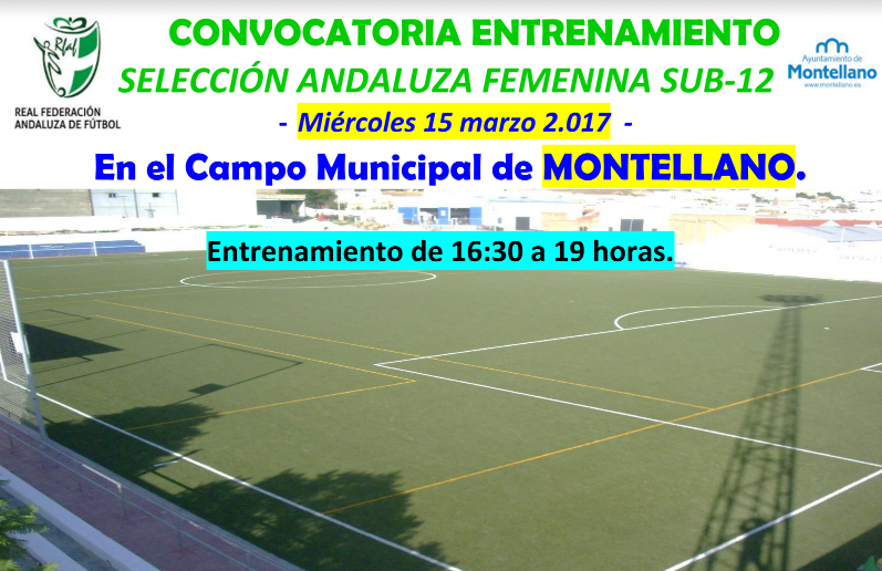 El próximo miércoles 15 de marzo la Selección Andaluza Femenina Sub-12 se ejercitará en el campo de fútbol Municipal con el técnico local Antonio Macías como miembro del cuerpo técnico. A la citación acudirán las mejores futbolistas de Andalucía, procedentes de los equipos más representativos de nuestra Comunidad, por lo que nuestro municipio será un referente a nivel andaluz.