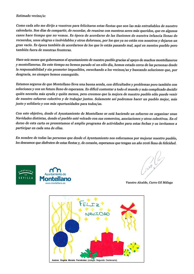 Ya han recibido en sus hogares el programa de actividades de la Navidad 2015 que viene introducido por una carta firmada por el Alcalde, Curro Gil, en la que felicita a los vecinos las Fiestas Navideñas. Pueden acceder a ella en el interior de lanoticia.