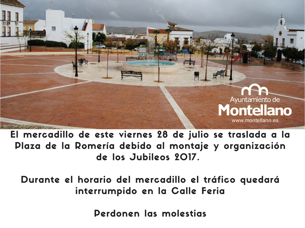 El montaje y organización de los Jubileos 2017 impide la instalación en el Recinto Ferial. Durante el horario del mercadillo, el tráfico de la Calle Feria quedará interrumpido.