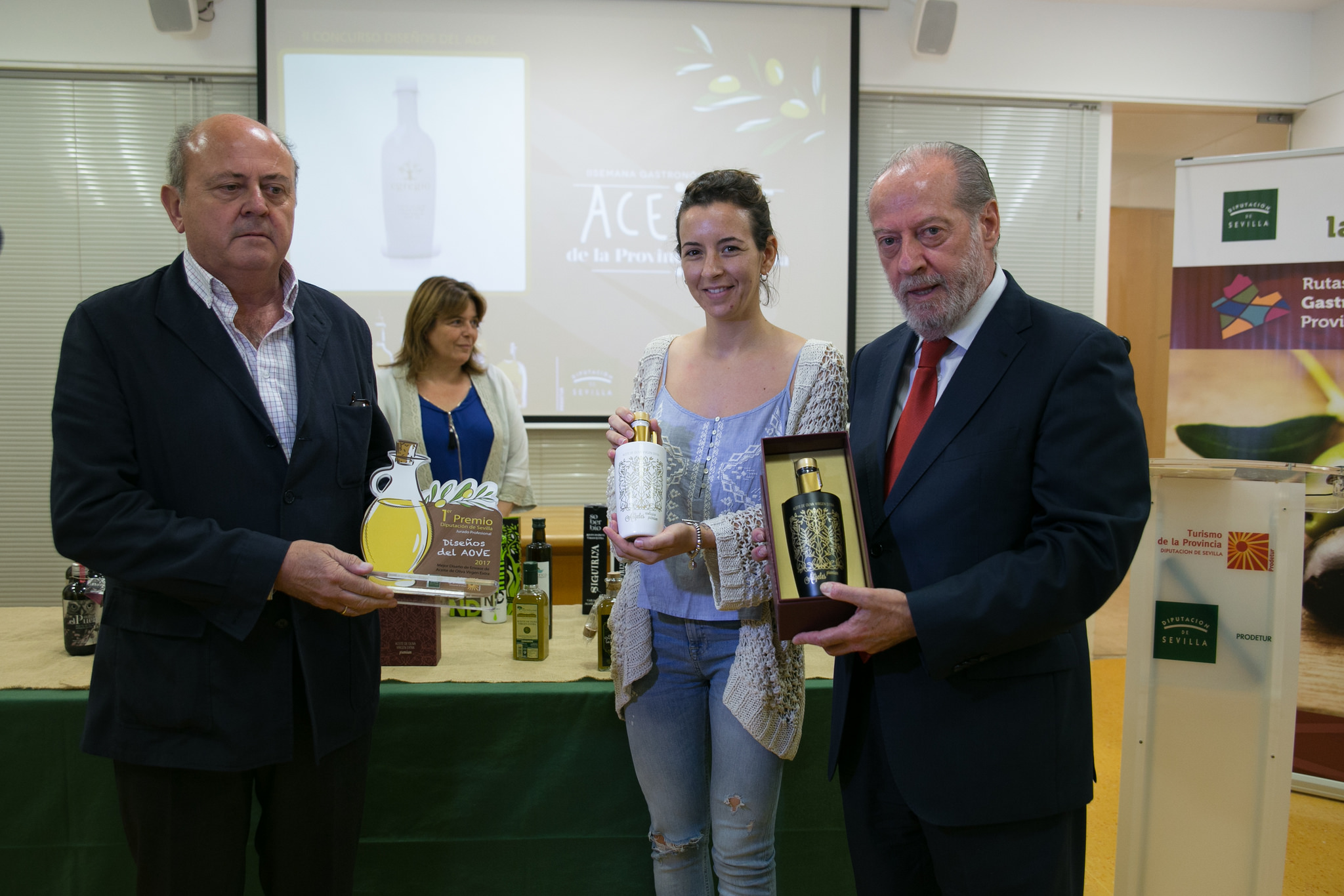El Premio consta de dos distinciones, una al envase más votado por el público en la votación realizada en cinco municipios durante la muestra itinerante de los AOVE de la provincia, la pasada semana, y en la que se expusieron la treintena de productos de empresas aceiteras sevillanas que han participado en el concurso. En la segunda modalidad se premia al envase seleccionado por un jurado de expertos en Marketing y Publicidad, integrado por Salvador Toscano, presidente de la Asociación de Empresarios de Publicidad de Sevilla (AEPS); Enrique López, de la Asociación Andaluza de Diseñadores, quien actuó como presidente del jurado; Andrés del Toro, consultor, investigador y profesor asociado en Branding, de la Universidad Loyola; y Ana Cortijo, profesora de la Universidad de Sevilla (Departamento de Comunicación Audiovisual y Publicidad). También formó parte del jurado, como secretario, el gerente de Prodetur, Amador Sánchez.