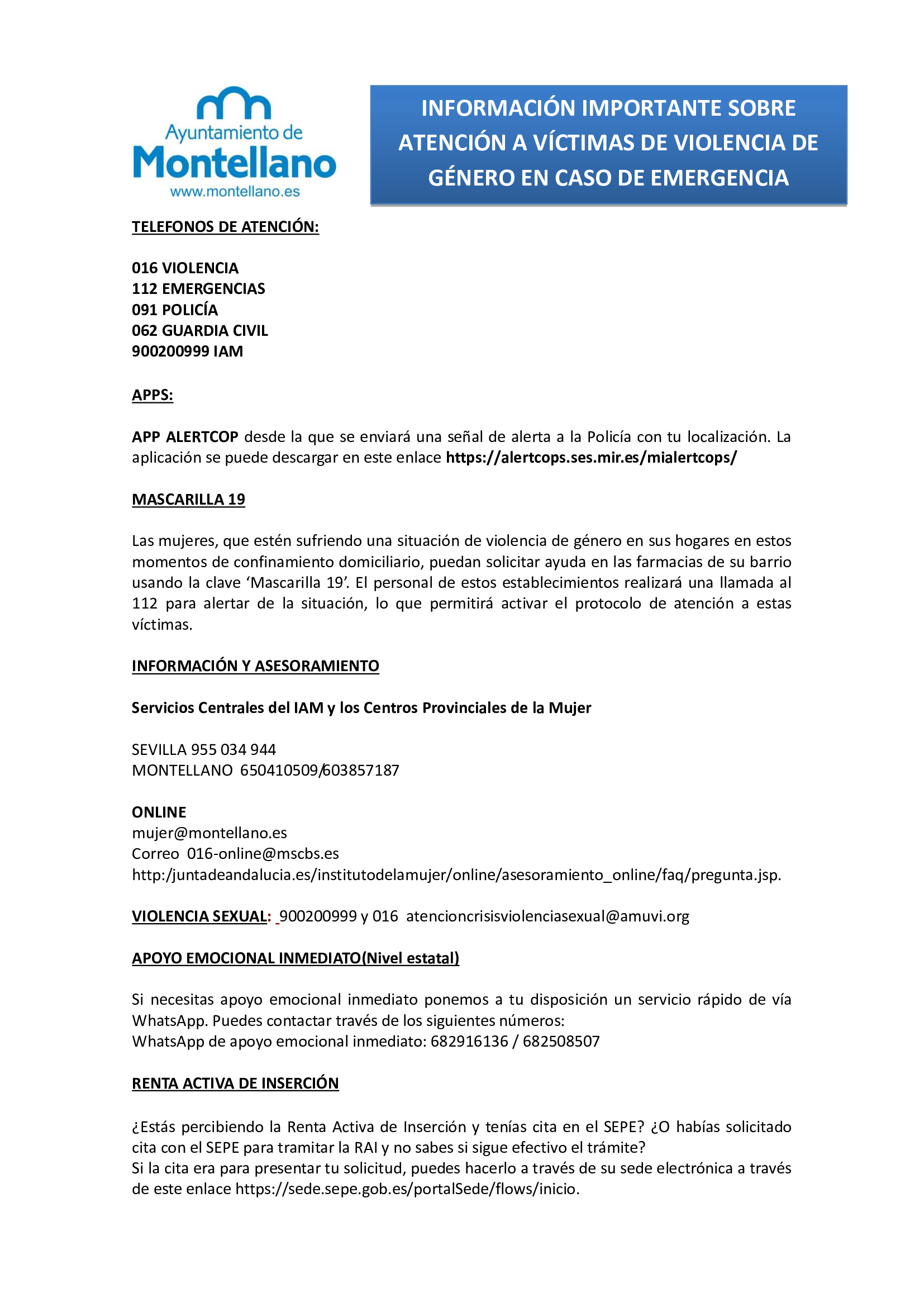 Las mujeres, que estén sufriendo una situación de violencia de género en sus hogares en estos momentos de confinamiento domiciliario, puedan solicitar ayuda de la siguiente manera: