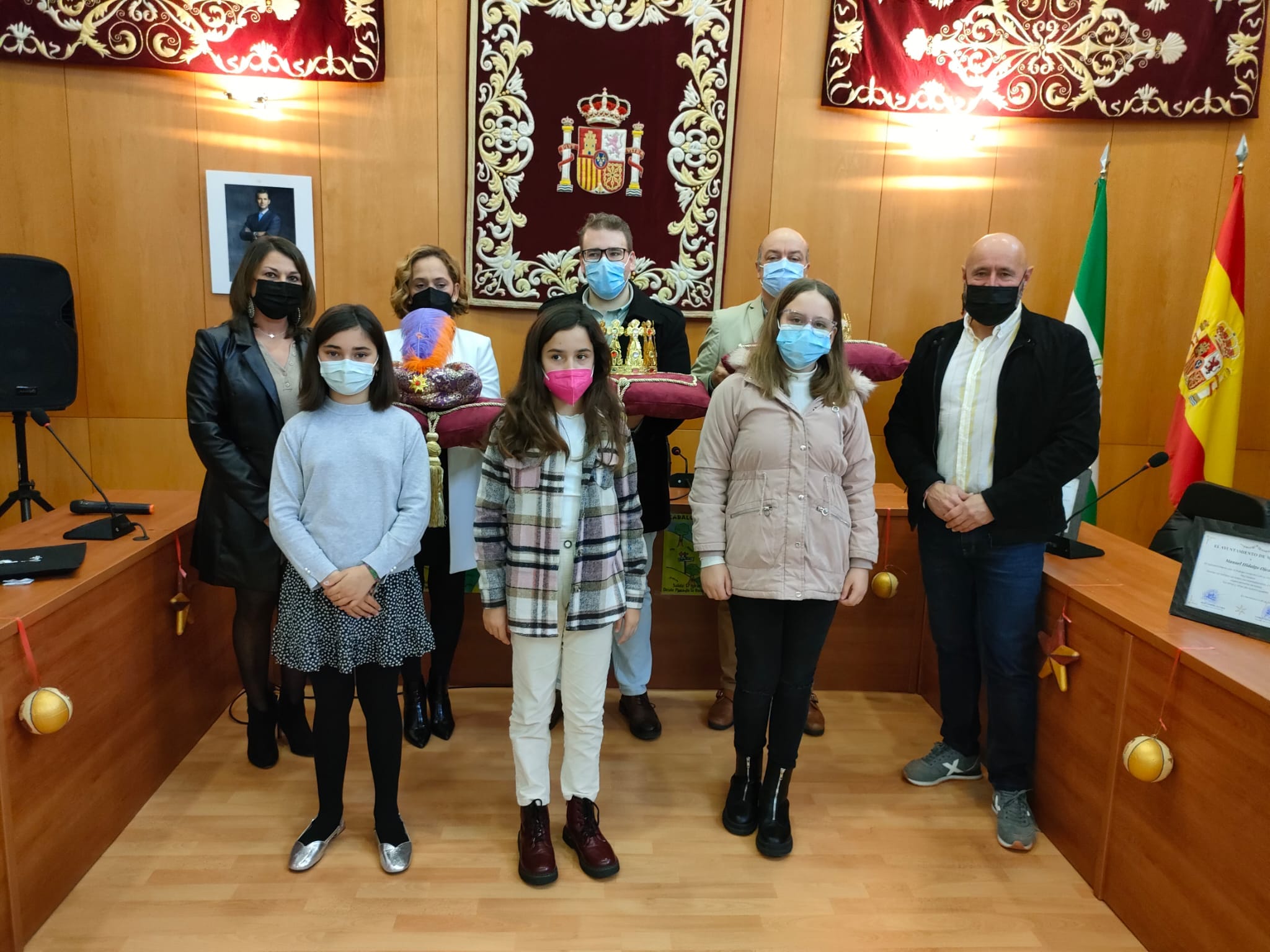 El Salón de Plenos del Ayuntamiento de Montellano acogió en el día de ayer el tradicional acto de coronación de los Reyes Magos del pueblo. Este año Melchor, que está representado por el tejido empresarial local, estará encarnado por Cristóbal Jesús Mesa Mesa, de la empresa Agromesa. Por su parte Gaspar, en representación de las asociaciones y colectivos sociales montellaneros, será Manuel Hidalgo Ojeda, de la Hermandad Sacramental del Gran Poder. Finalmente a Baltasar, que se designa entre los vecinos y vecinas de Montellano, lo encarnará María Luisa Gallardo Martín.