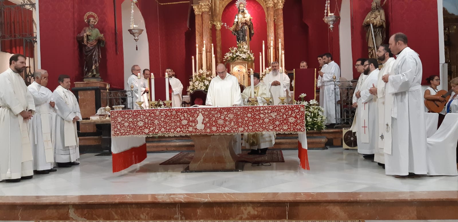 Tras el nombramiento y juramento oficial de fidelidad de D. Jorge Dorado Picón, dio comienzo la Misa, oficiada por el Vicario de la Vicaría Sur de la Diócesis de Sevilla, Sr. D. Antonio Jesús Rodríguez Báez.