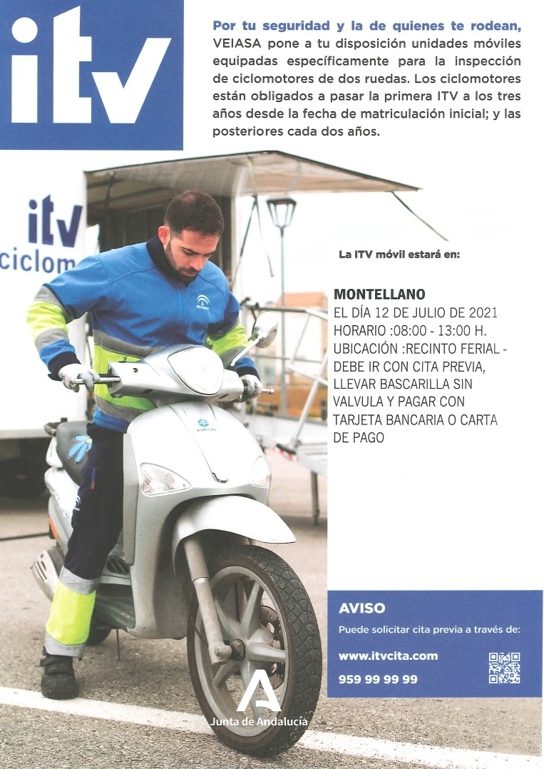 La nueva cita para pasar la ITV a los ciclomotores en nuestra localidad, ya tiene fecha, será el próximo lunes 12 DE JULIO en el Recinto Ferial. Los horarios de atención al público serán, por la mañana desde las 08:00 a 13:00 horas.