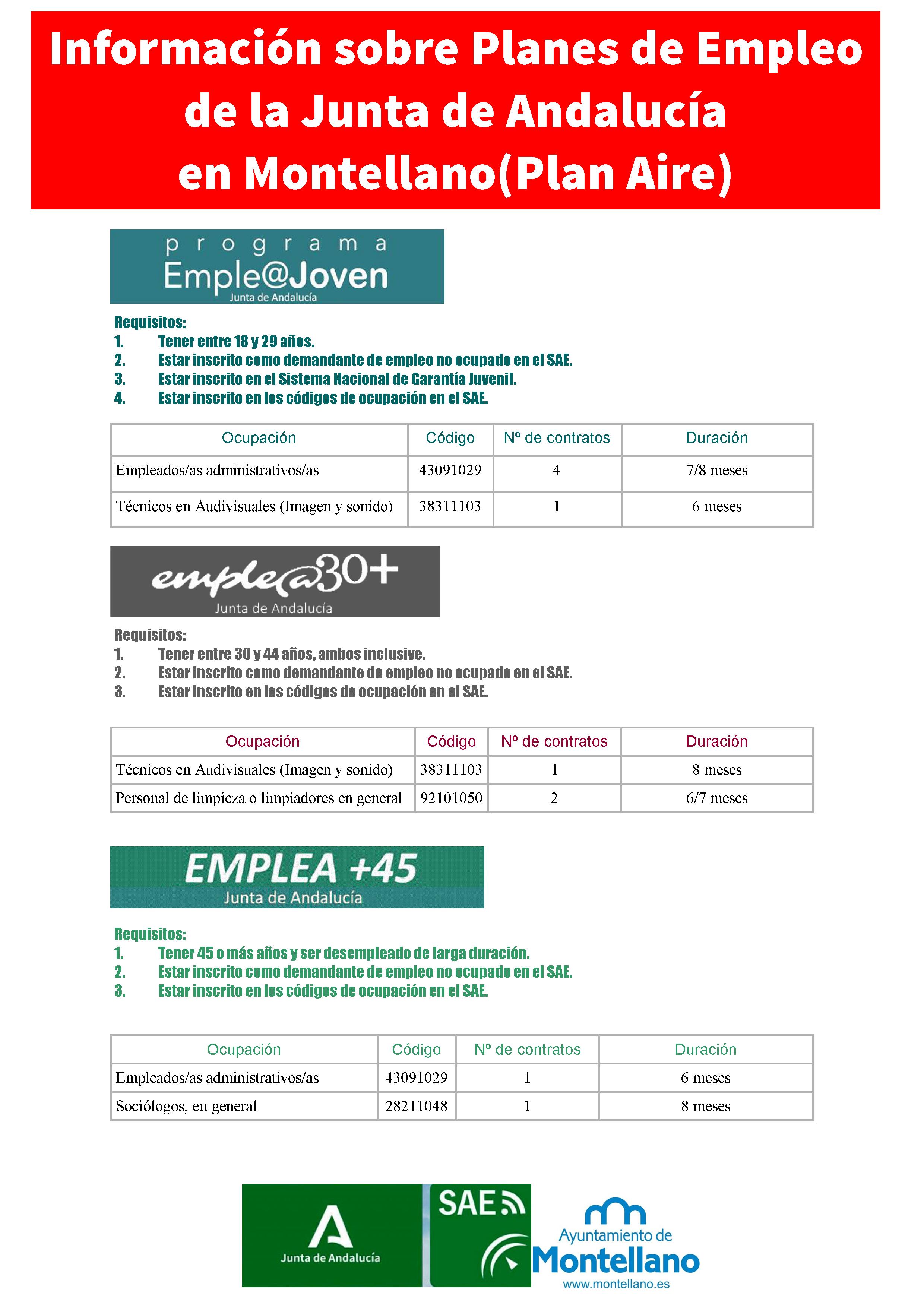 INFORMACIÓN SOBRE PLAN DE EMPLEO DE LA JUNTA DE ANDALUCÍA EN MONTELLANO (PLAN AIRE).