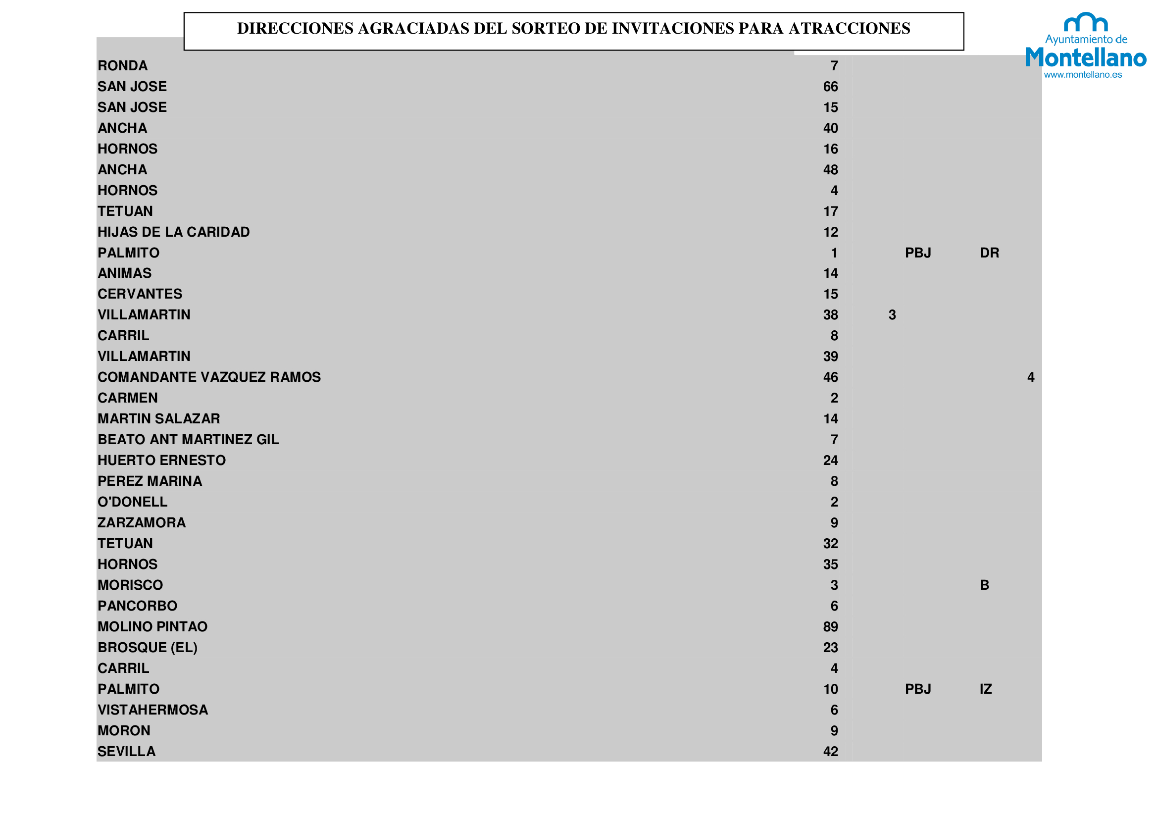 El sorteo se ha realizado entre todos los vecinos y vecinas de Montellano empadronados en el municipio. Las invitaciones serán entregadas en los domicilios correspondientes para que puedan canjearla a lo largo de estos días