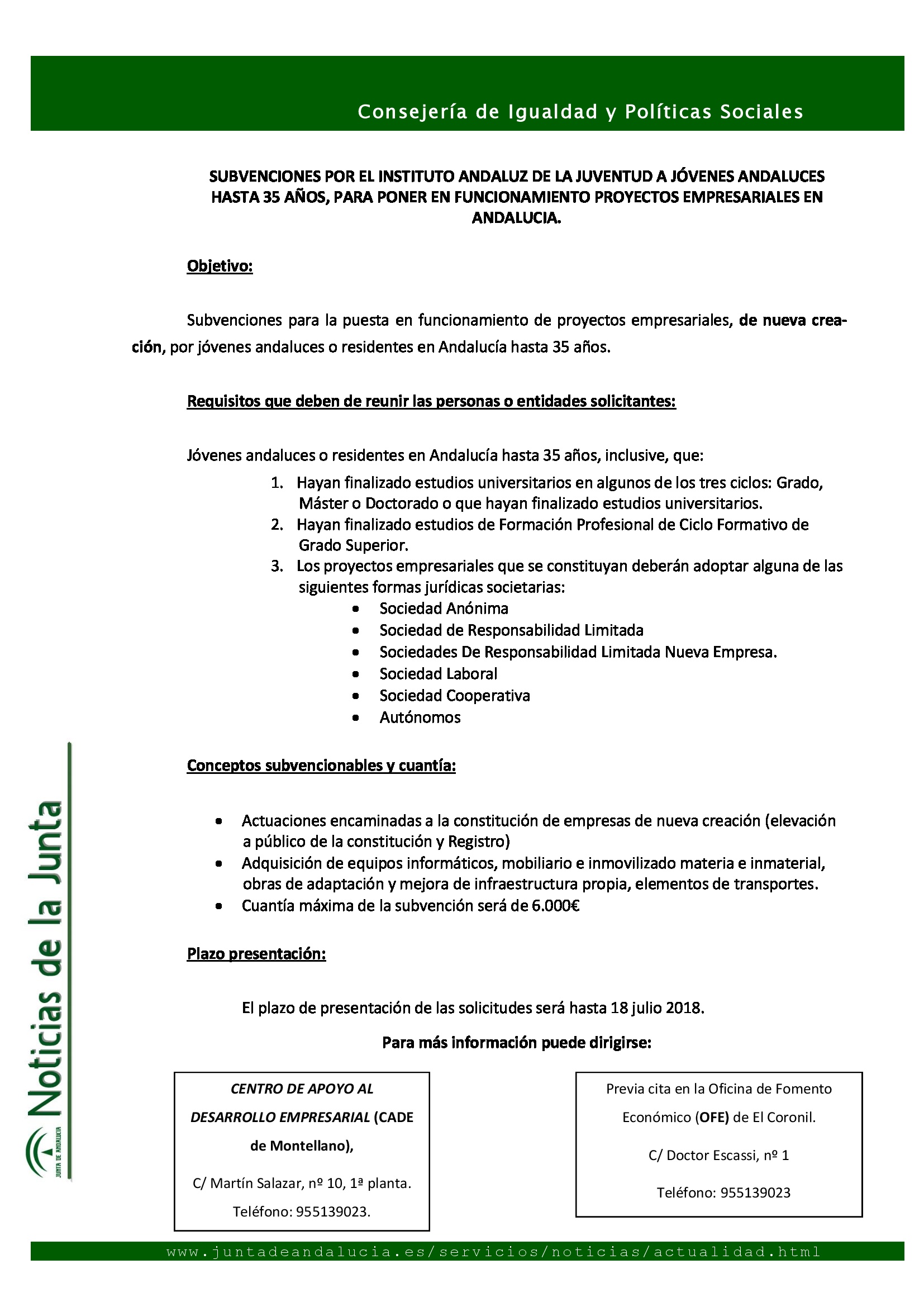 Subvenciones a jóvenes andaluces hasta 35 años para proyectos empresariales
