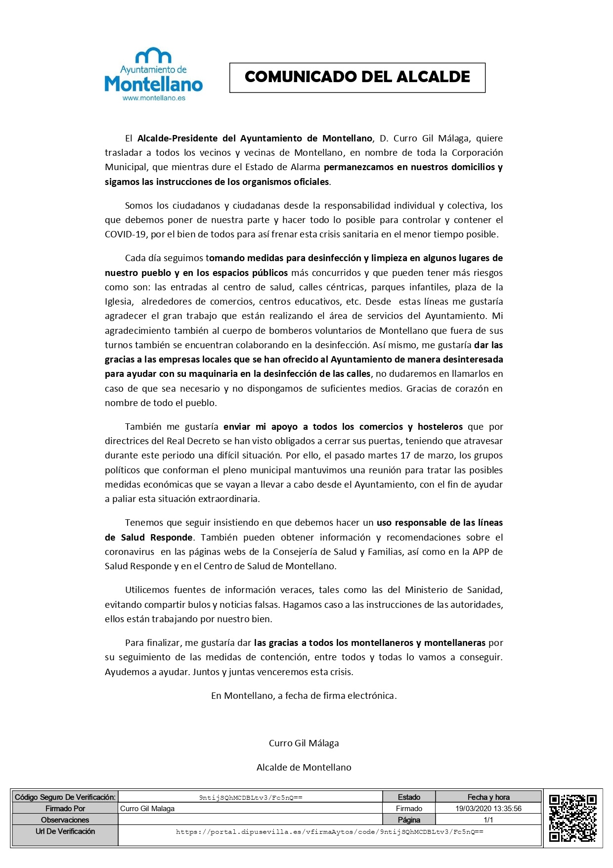 13/03/2020 #Alcaldía #Asuntos Sociales #Bienestar social #Comunicación