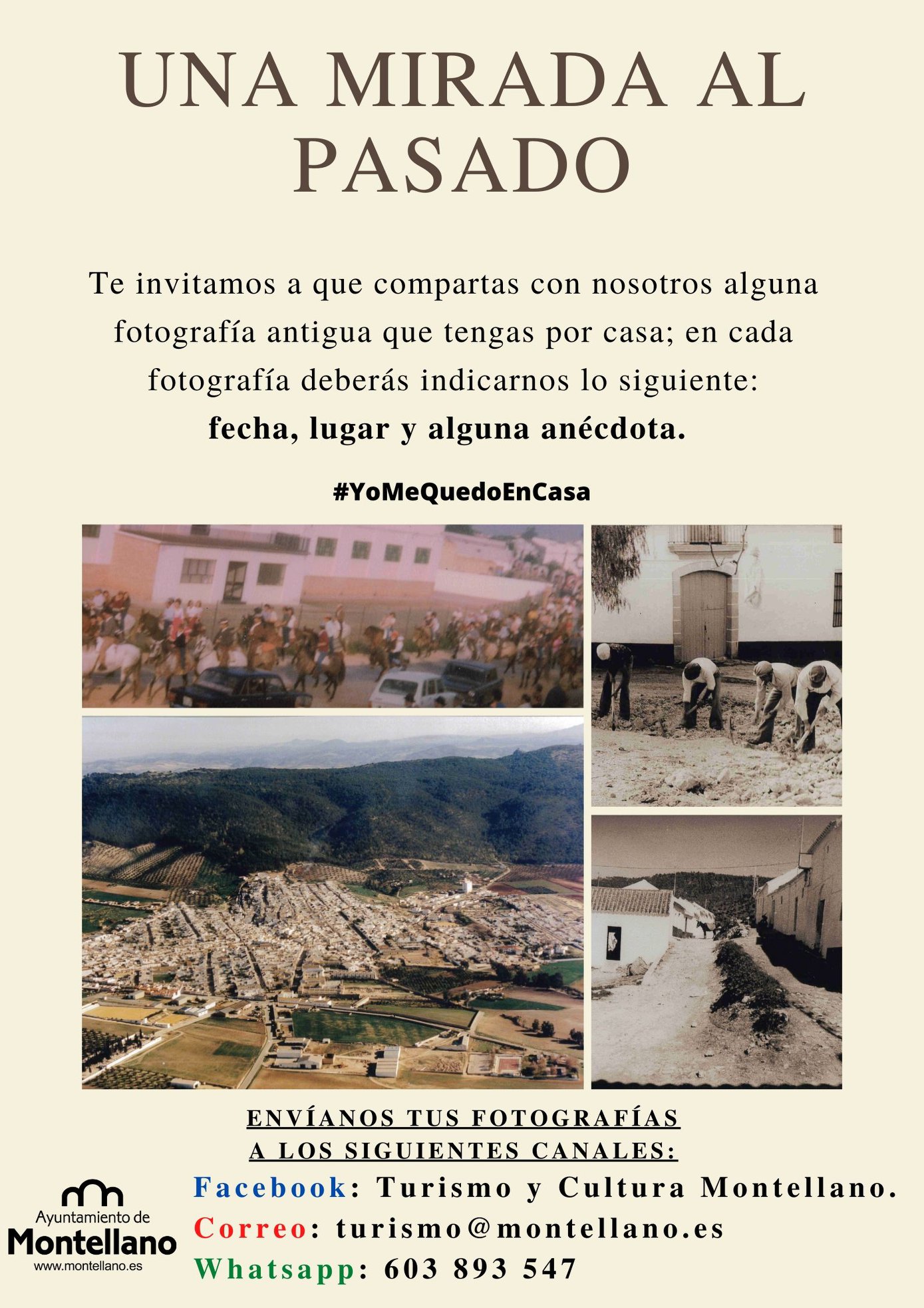 El área de cultura organiza la actividad "Una Mirada al Pasado". Para participar pueden compartir con todos los demás aquellas fotografías antiguas que tengáis en vuestra casa y nos las envíeis por distintos medios. Las fotografías serán compartidas en la página de Turismo y Cultura del ayuntamiento de Montellano.