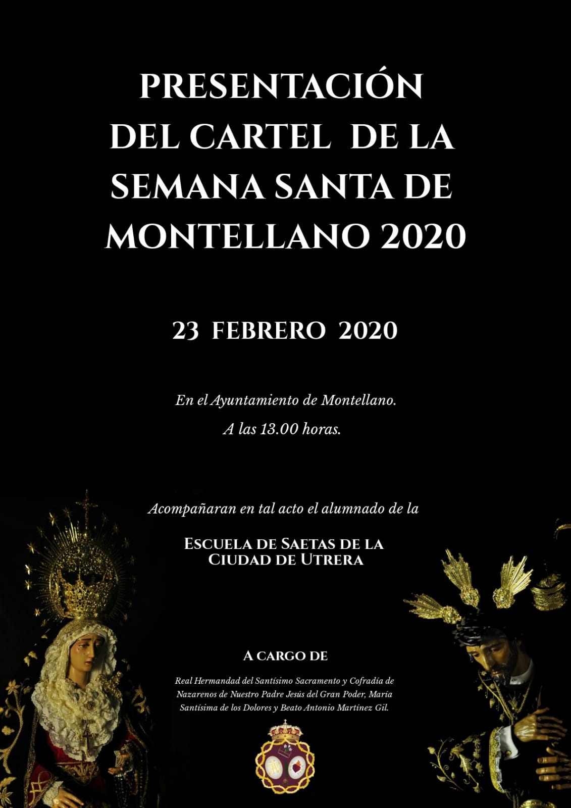 Este año el cartel correrá a cargo de la Hermandad Sacramental del Gran Poder. La presentación tendrá lugar a las 13:00h en el Ayuntamiento de Montellano.
